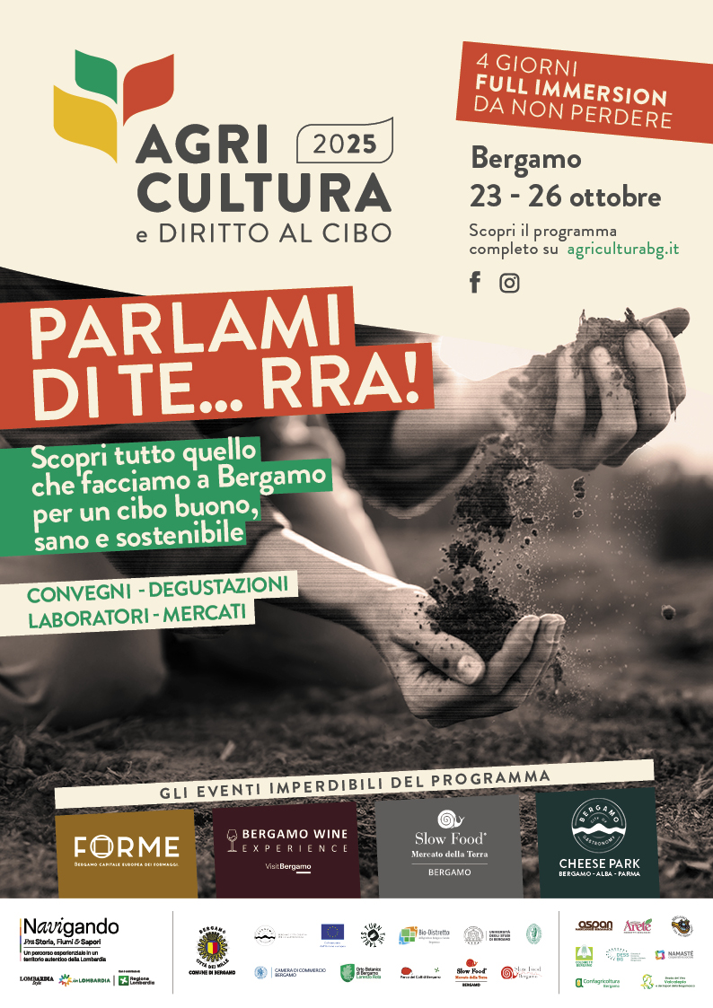 Dal 23 al 26 ottobre, Bergamo – Città Creativa UNESCO per la Gastronomia – ospita una nuova edizione di AgriCULTURA e Diritto al Cibo, il festival che unisce tradizione agricola, cultura gastronomica e riflessione sul futuro dell’alimentazione.