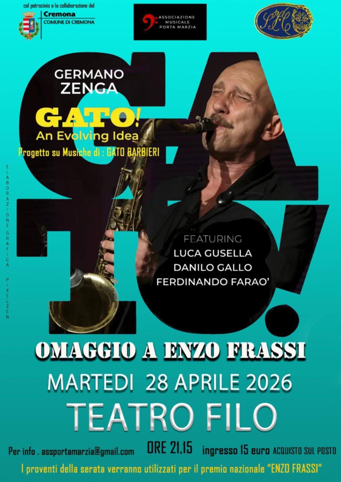 Il quartetto capitanato dal sassofonista Germano Zenga, che con Frassi ebbe una lunga collaborazione e registrò due album, ci porterà in un viaggio musicale tra le sonorità degli anni 70 e l’evoluzione dei loro straordinari arrangiamenti sulle musiche composte e interpretata dal Maestro Gato Barbieri.