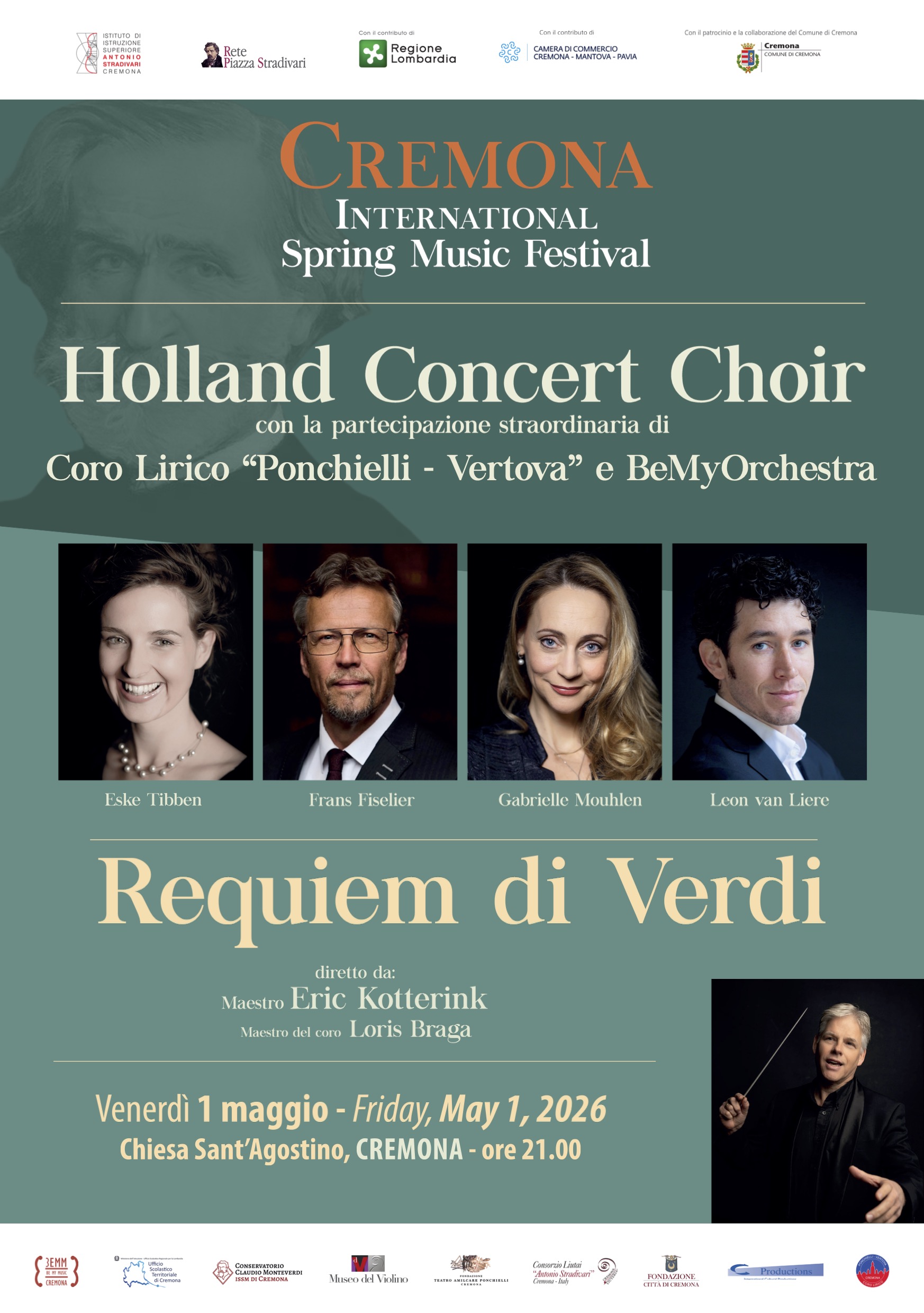 Accanto al coro olandese si esibirà il Coro Lirico “Ponchielli-Vertova”, storica istituzione musicale cremonese che affonda le proprie radici nell’Ottocento e che da decenni rappresenta una delle più autorevoli realtà corali del panorama lombardo. La preparazione del coro è affidata al Maestro Loris Braga, direttore e musicista cremonese già protagonista di numerosi progetti artistici e sinfonico-corali di rilievo nazionale.